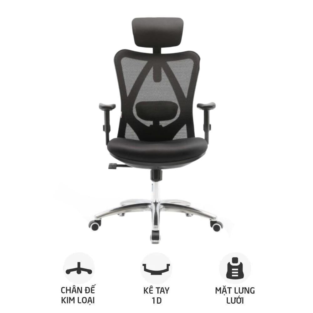 Ghế công thái học SIHOO M18 | Đen, 120kg, Chân xoay, Lưng lưới