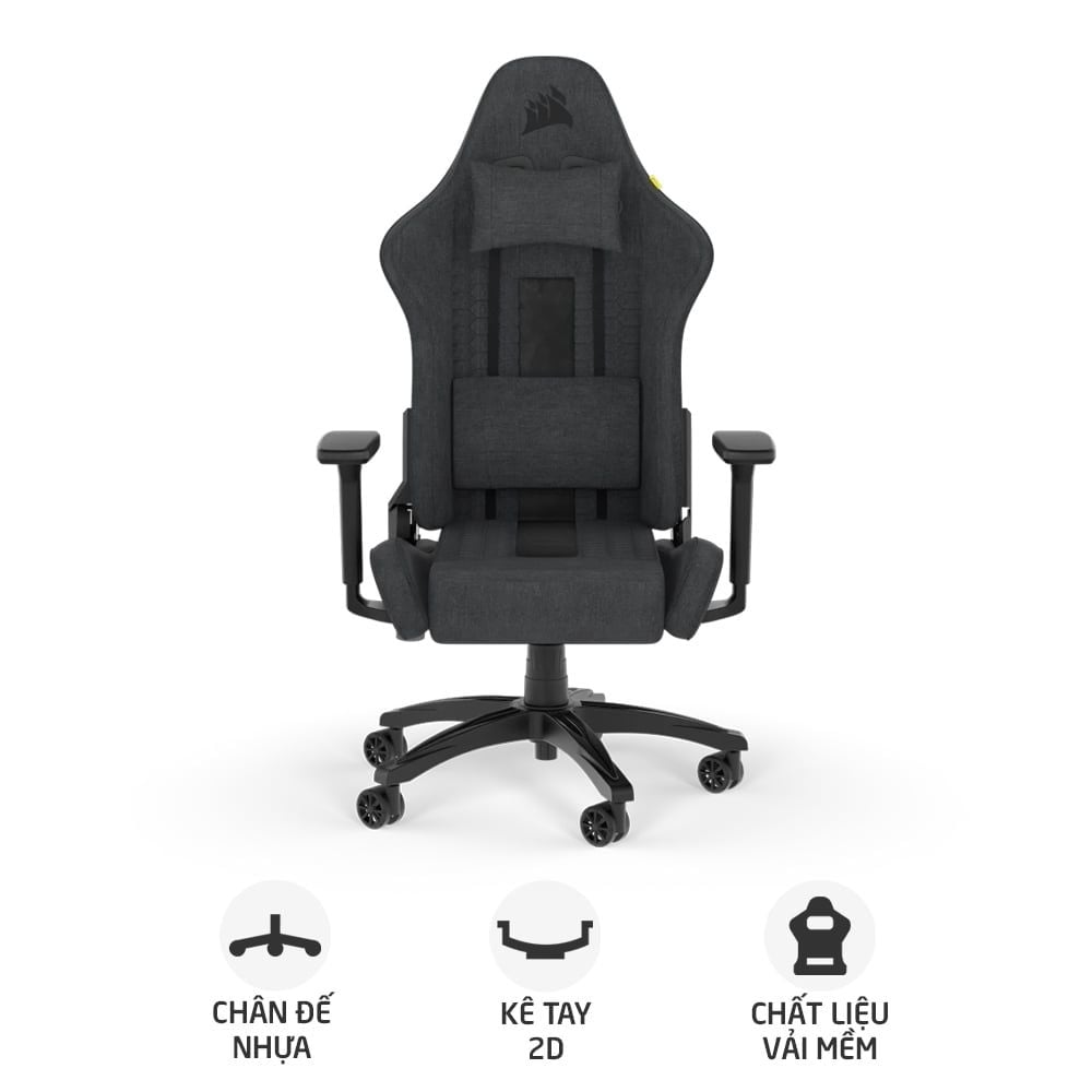 Ghế gaming CORSAIR TC100 RELAXED | Xám, 120kg, Chân xoay, Lưng vải (CF-9010052-WW)
